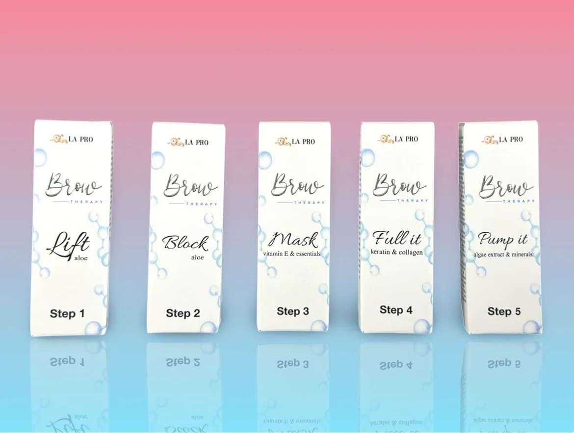 Kitul mare conține toate cele 5 etape din linia Brow Therapy și includ toate accesoriile necesare, precum și pensule micro brush și periuțe, pentru a efectua tratamentul.